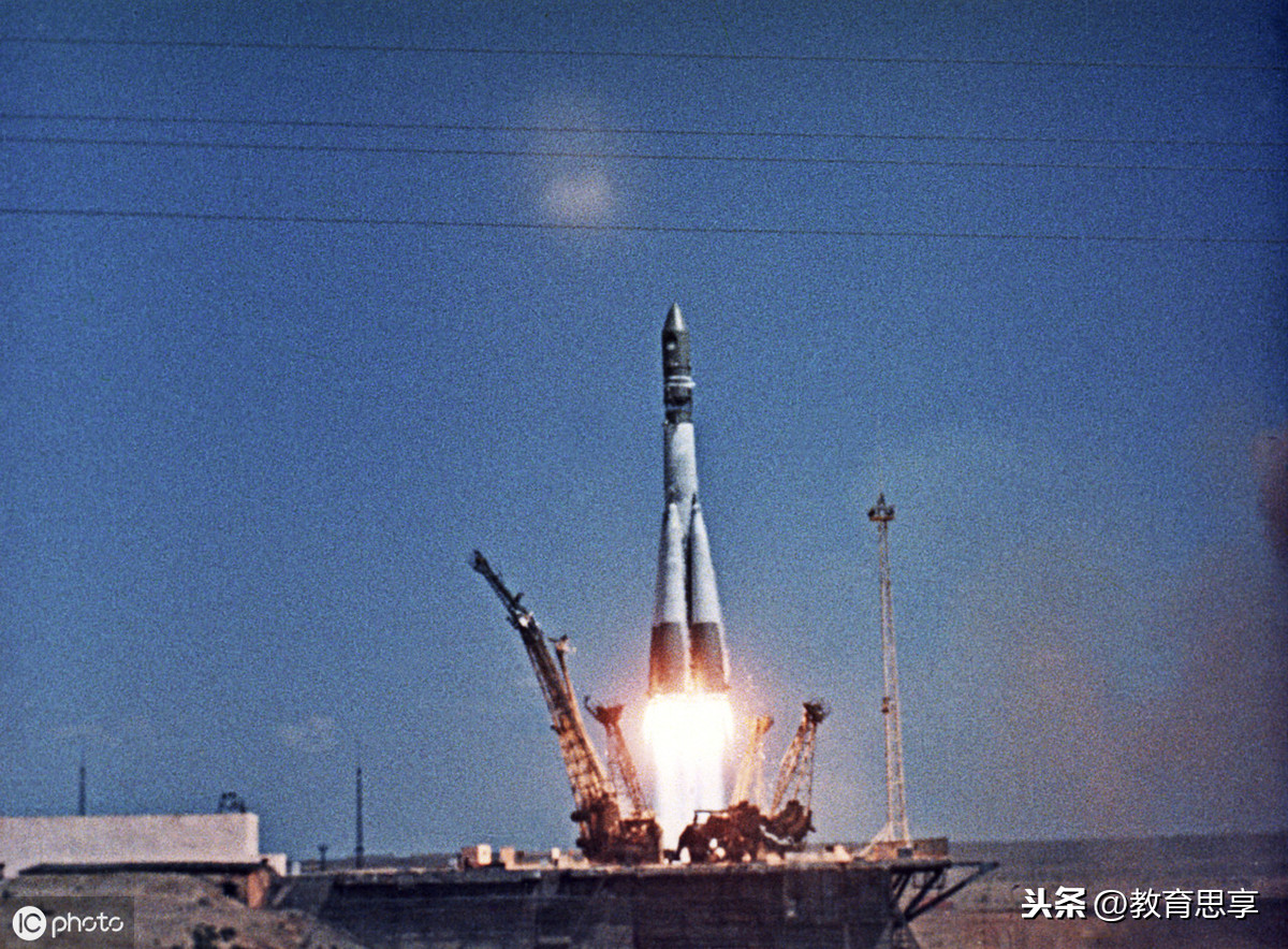 1961年4月12日,加加林乘坐“东方一号”宇宙飞船从拜科努尔航天发射场起飞。