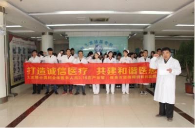 济南九龙泌尿专科医院陈尚国院长带领全院医务工作人员庄严宣誓,始终以诚信服务为中心,努力打造诚信医疗,做老百姓心中值得信赖的好医院。