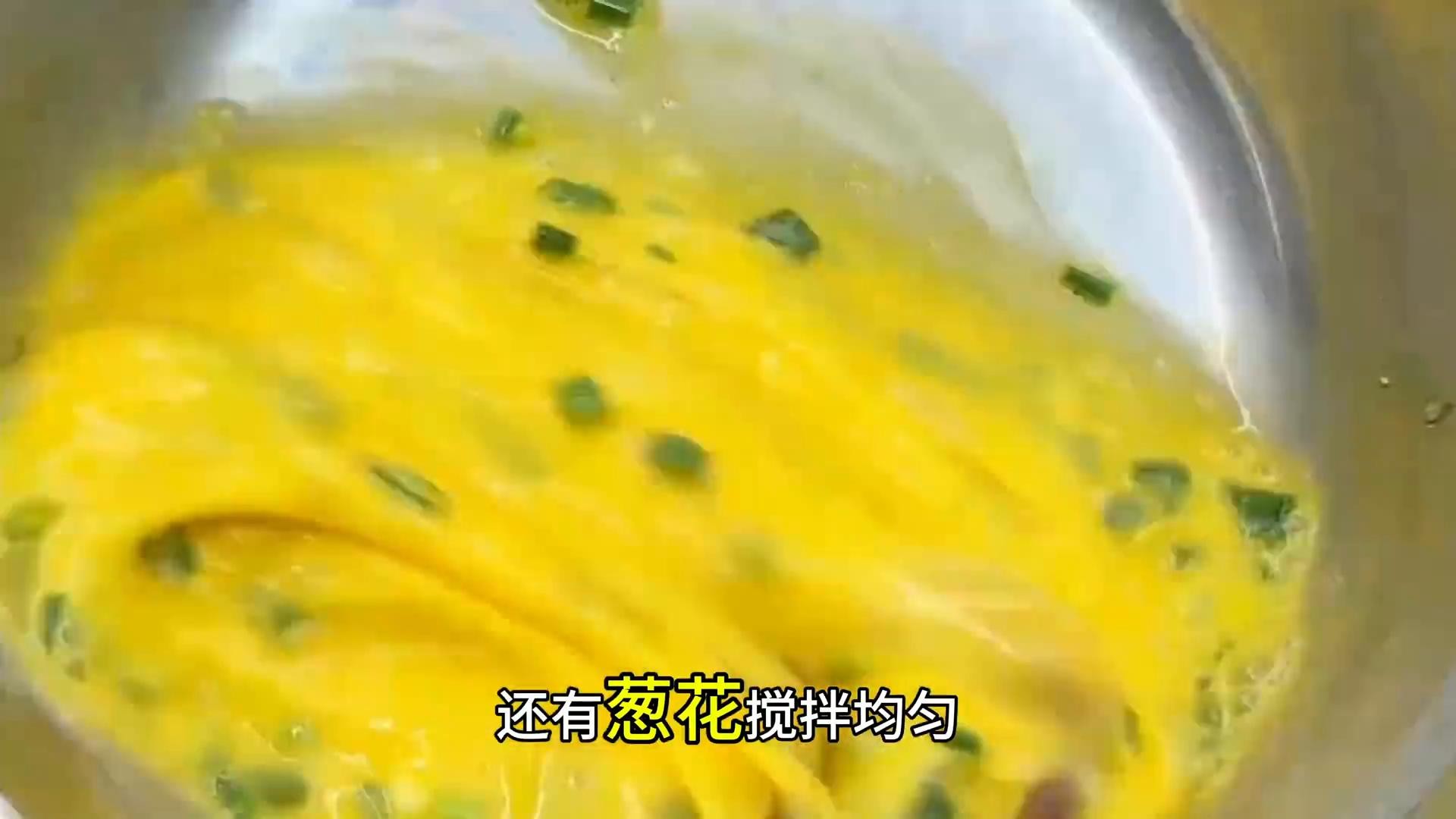 ·准备空碗打入4个鸡蛋,下入盐、胡椒粉调味,再来生粉水增加鸡蛋的嫩滑,还有葱花搅拌均匀。