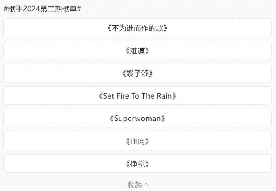 5月14日,湖南卫视歌手第二场竞演歌单新鲜出炉,歌单采取限时3小时投票,期待值最高歌曲的对应演唱歌手将在《歌手2024》本轮揭榜赛竞演前,拥有重新选择出场顺序的权利。