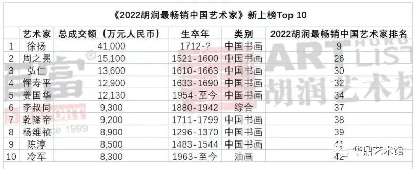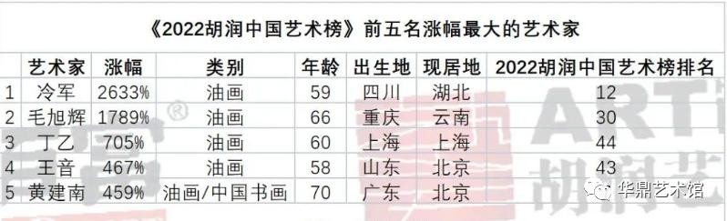 2022年胡润前十名最贵的在世艺术家作品中,冷军以《蒙娜丽莎——关于微笑的设计》8050万成交价位列第6位,以2633%的涨幅位列前五名涨幅最大的艺术家榜首。冷军已经连续8年登上胡润中国艺术榜,2022年胡润最畅销中国艺术家榜第10位,2022年胡润中国艺术榜第12位。