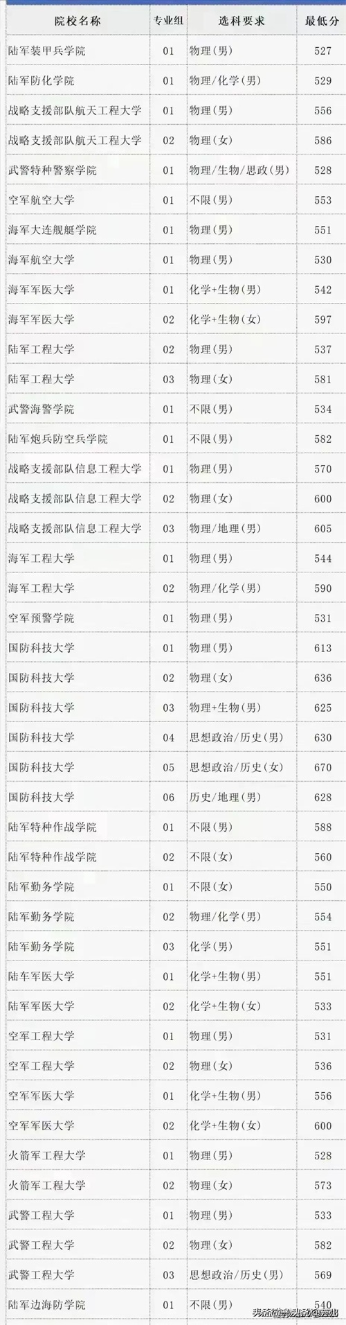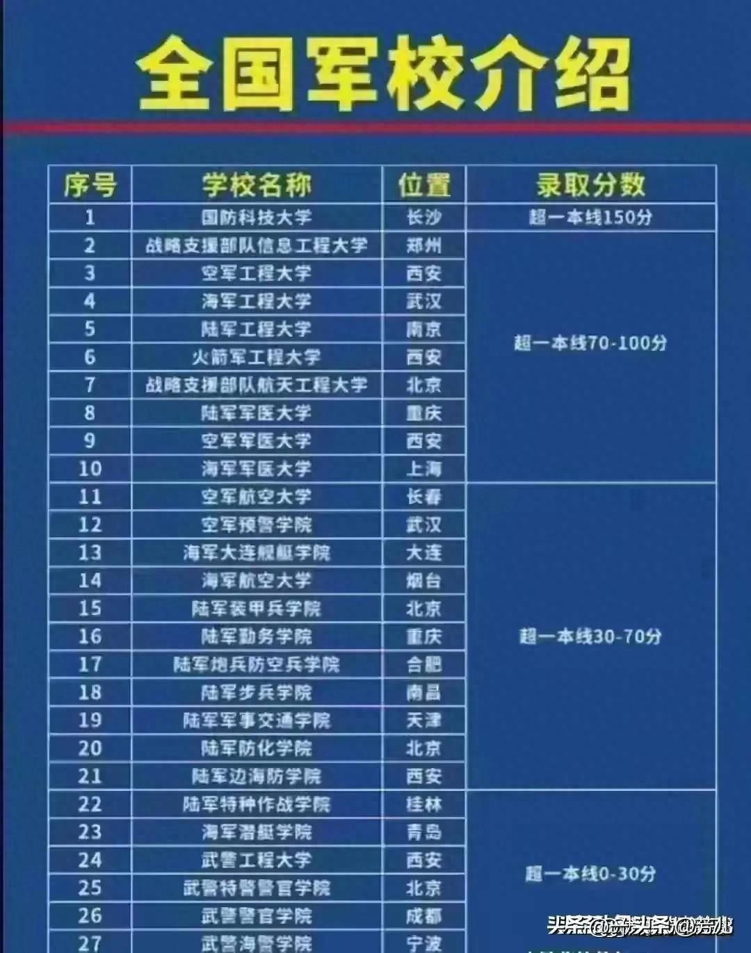 2024年全国各大军校录取分数线!