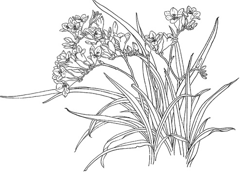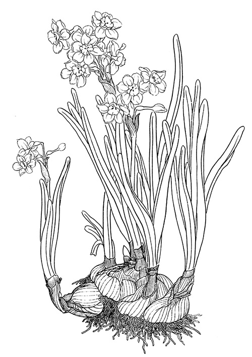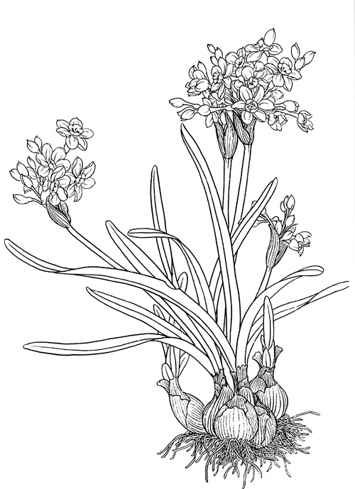 工笔白描水仙
