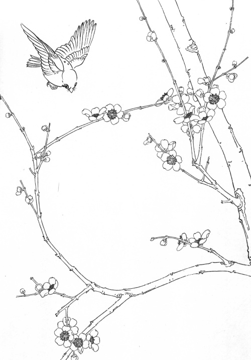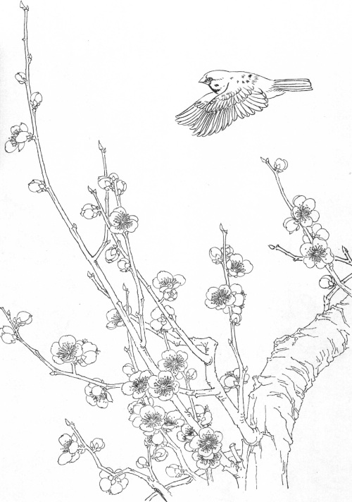工笔白描梅花