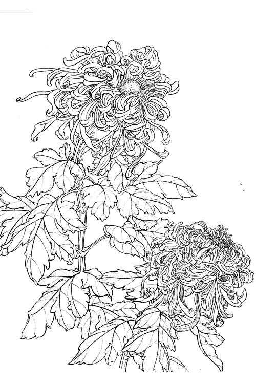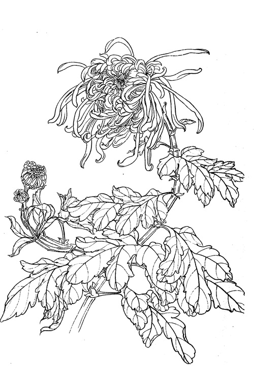 工笔白描菊花