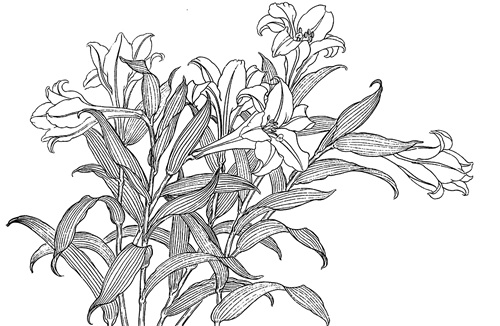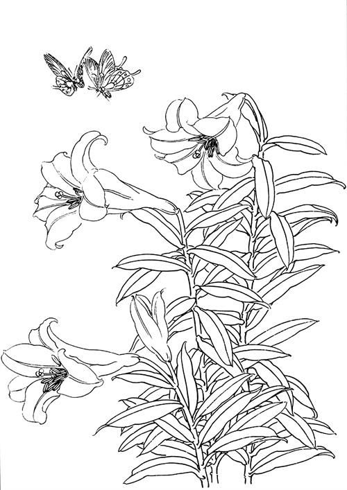 工笔白描百合花