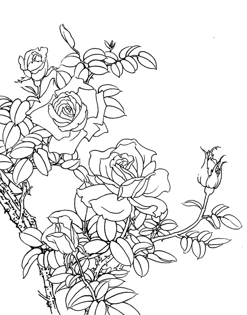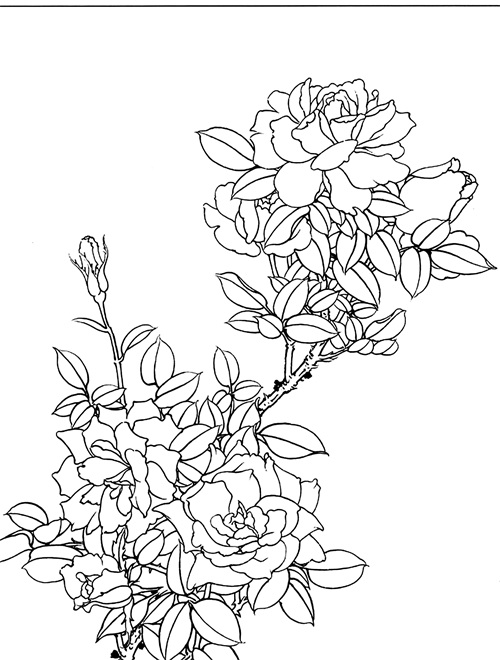 工笔白描月季