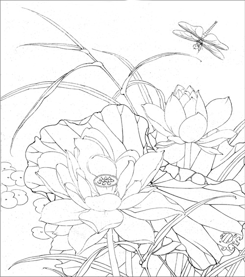 下面分享一组工笔白描范稿: