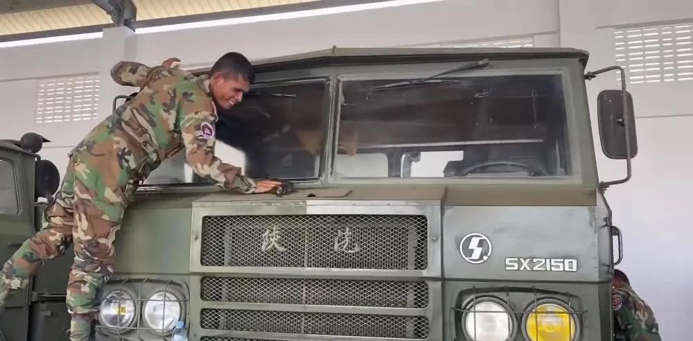 (柬埔寨陆军的陕汽2150卡车,它们用于拖曳PL-66)
