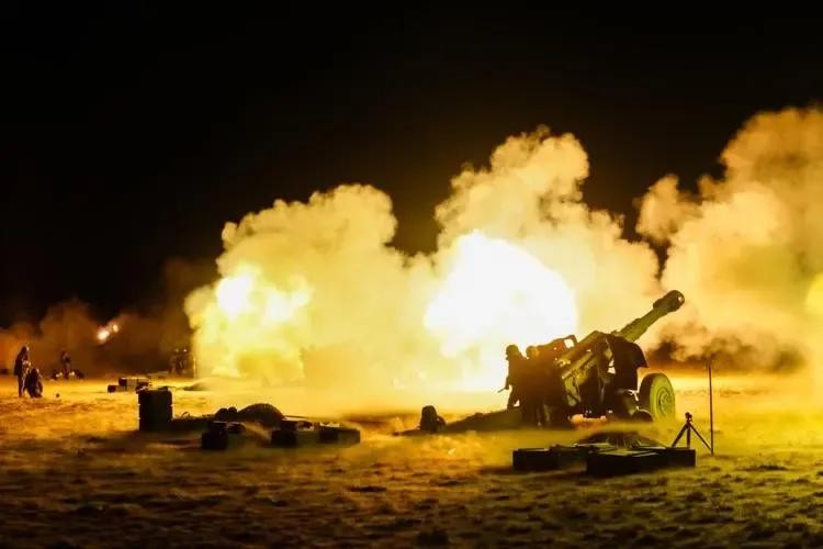 此时,中国陆军66式加榴炮的5.67吨战斗全重有利于我军使用的中/重型军用卡车牵引:中型卡车牵引66式加榴炮时带上几发备弹,重型牵引车可带上数十发备弹。既有利于炮兵群机动,也有利于在贴近战斗前沿打袭扰战:一个152炮兵群能够在3~8分钟内展开火炮、进行一轮4发急促射,继而在3~8分钟内汇拢火炮撤离——高原地带,66式还是占尽先机的;可是,短射程和落后火控系统还是让它陷入困境;