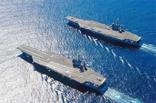 而福特级航母则更厉害,福特级航母长为227米,宽为78米,总重量达到了10万吨,满载排水量为11,2万吨,舰身上涂的油漆都达到了75.7万升,最大航速可以达到39节。