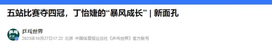 《五站比赛夺四冠,丁怡婕的“暴风成长”丨新面孔》乒乓世界,2023年10月27日发布
