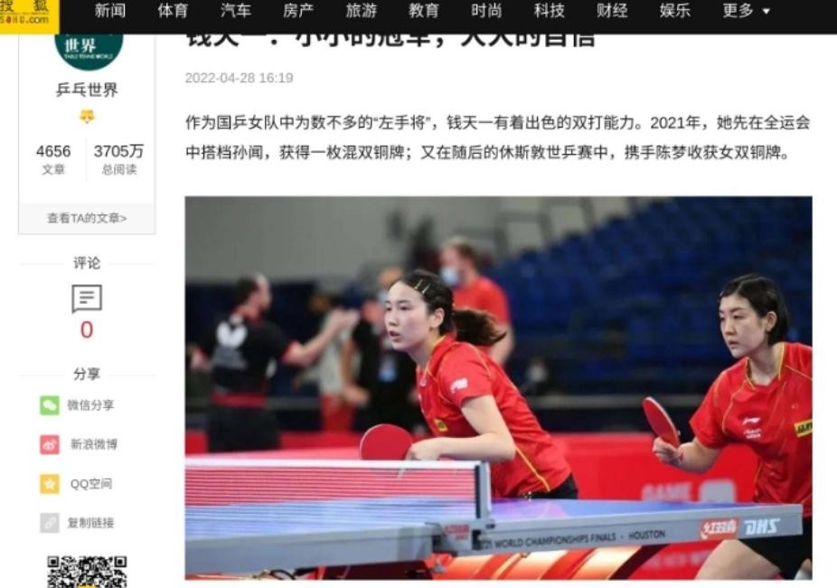 《钱天一:小小的冠军,大大的自信》乒乓世界,2022年4月28日发布