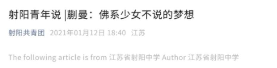 《射阳青年说丨蒯曼:佛系少女不说的梦想》射阳共青团,20121年1月12日发布