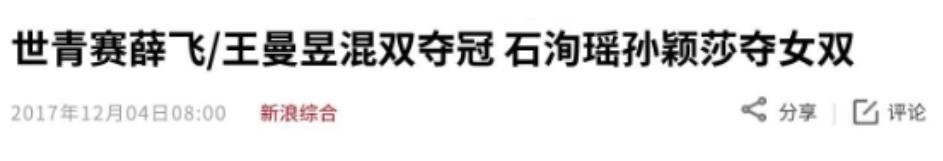 参考资料:《世青赛薛飞/王曼昱混双夺冠 石洵瑶孙颖莎夺女双》新浪综合,2017年12月4日发布;