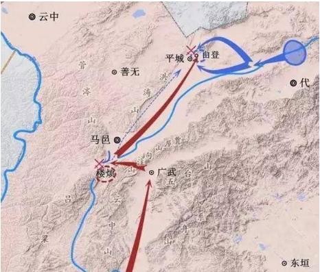 与此同时,刘邦亲率部队到了晋阳驻扎。听闻前锋部队多次胜利的消息,一时不敢轻举妄动,便派出探子去探查匈奴的实力。冒顿很是狡猾,将老弱病残之人置于前方,而将精兵隐藏后方。探子瞧见了匈奴的老弱病残情况,就将此前情况向刘邦报告。刘邦真以为匈奴羸弱,一路高歌猛进,越过勾注山,直达广武。
