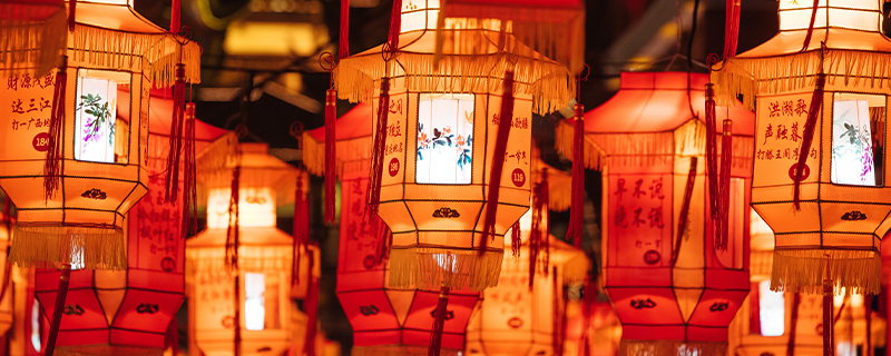 7、猜谜:公共场所挂着许多灯笼,人们聚集在一起猜灯笼身上的谜语;