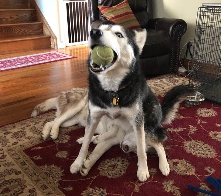 5、哈士奇:姐姐,你去哪了?来陪我玩球呀