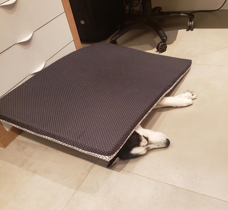 这哈士奇真傻的可以,这是垫子不是被子!
