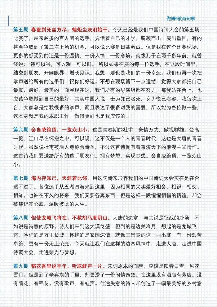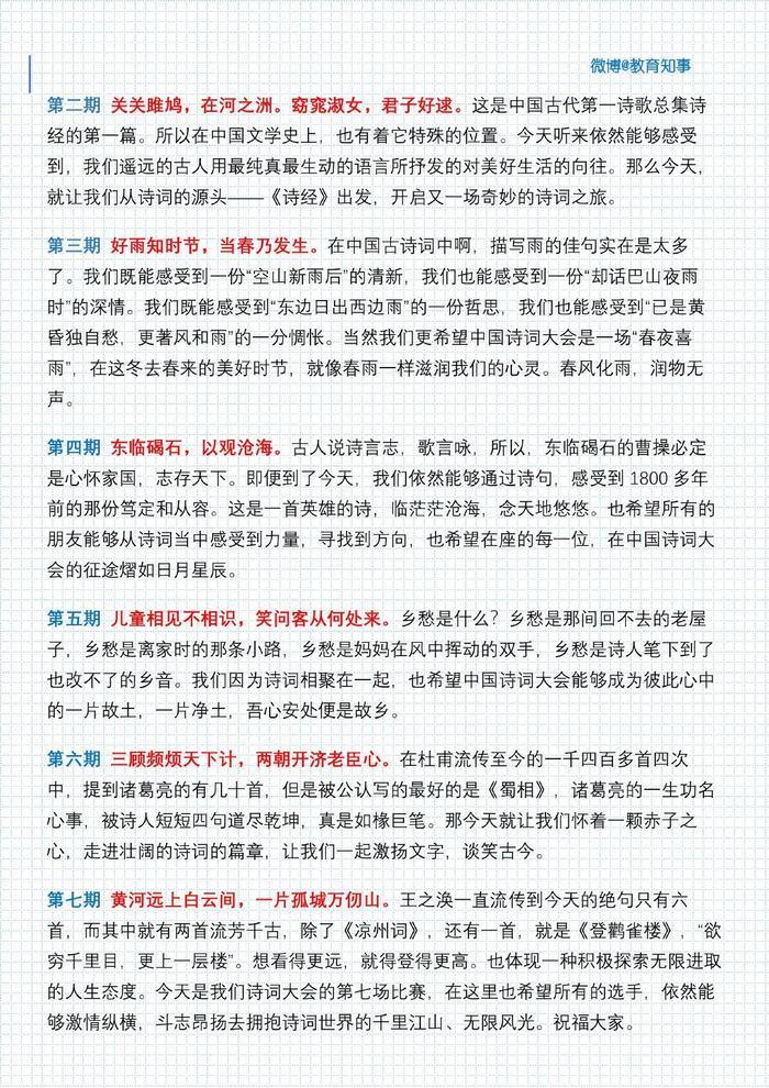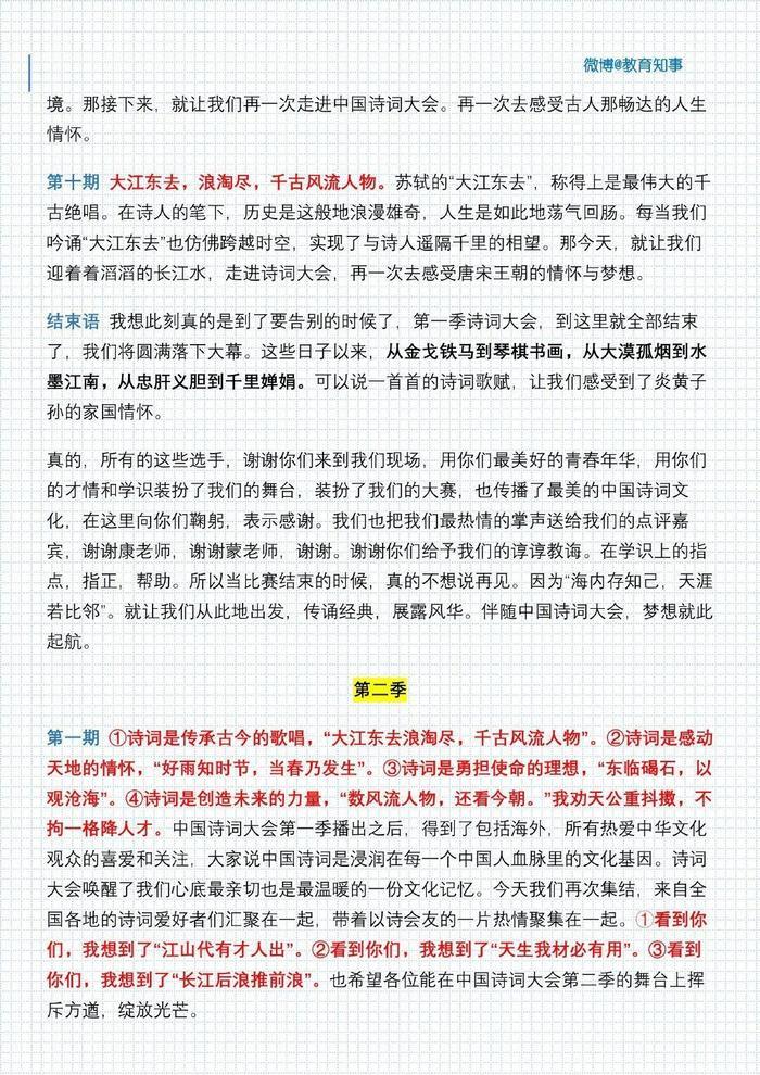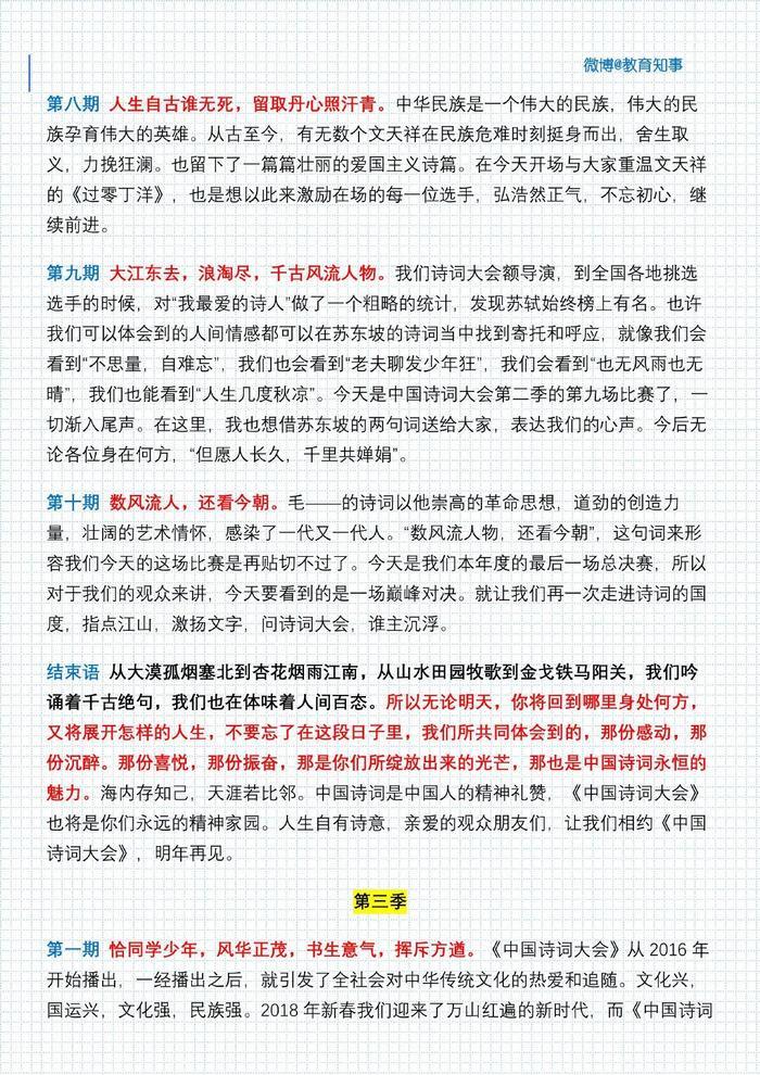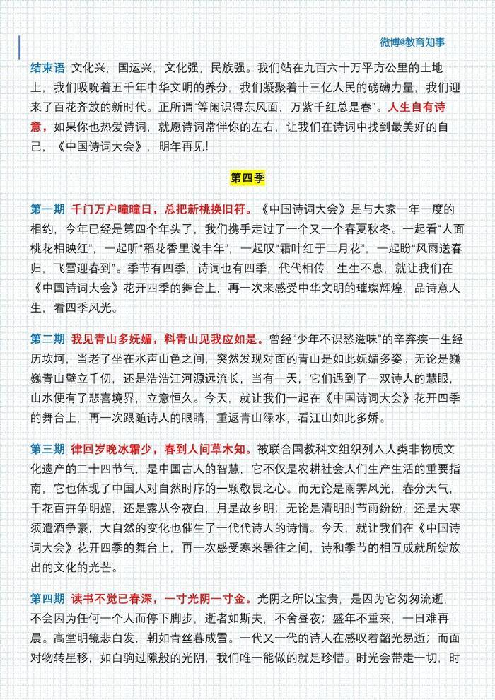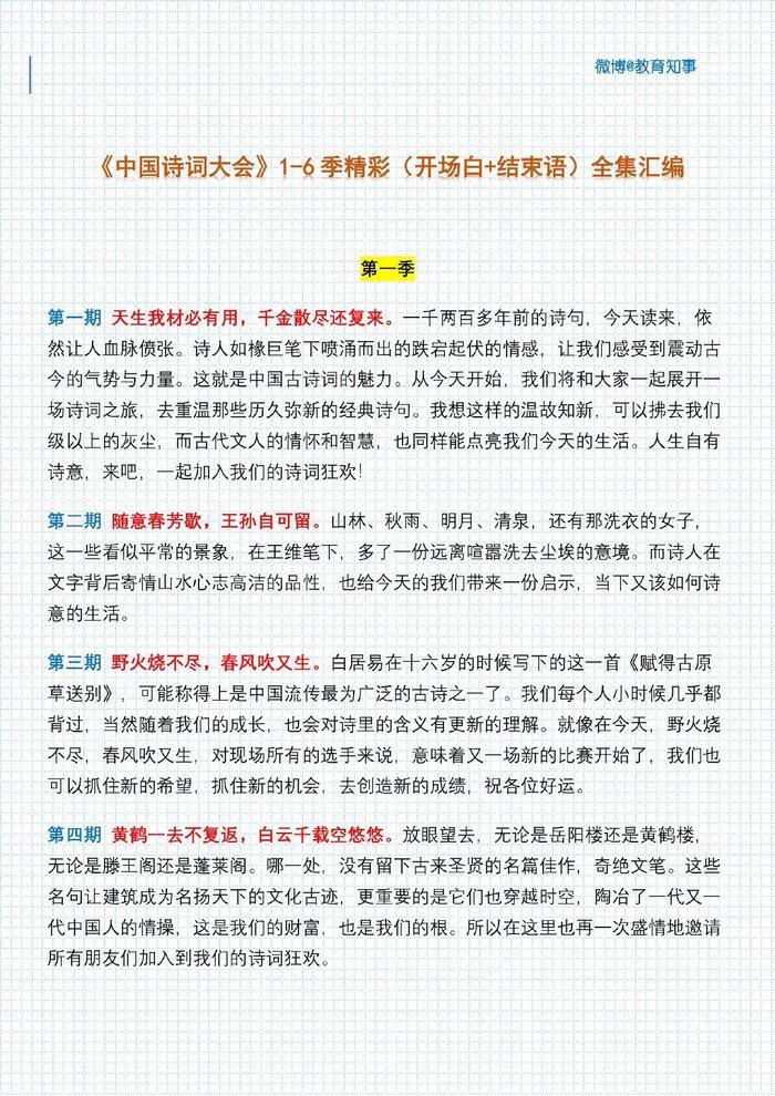 《中国诗词大会》1-6季精彩开场白和结束语。