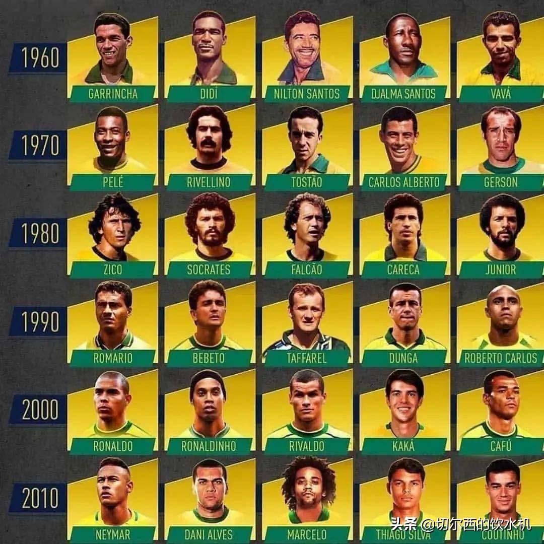 然而观察2010年后的巴西队前5人,差距与前人可谓不是一星半点。首先是位置上,2010年后巴西出色的球员,大多都是后卫。考虑到还有卡塞米罗、马尔基尼奥斯等,桑巴足球近10年的辉煌,都是得益于防守线,这与球队擅长进攻的历史并不契合。