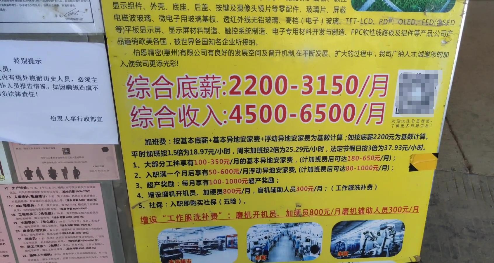 惠州伯恩光学:月薪4500-6500,临时工21个小时,吸引大批女孩子