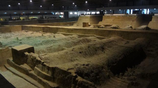 秦始皇兵马俑博物馆的一号坑规模最大,呈长方形,是一个以战车和步兵相间的主力军阵。1979年开放,长210米,宽62米,距原地表深4.5米--6.5米,面积14260平方米。