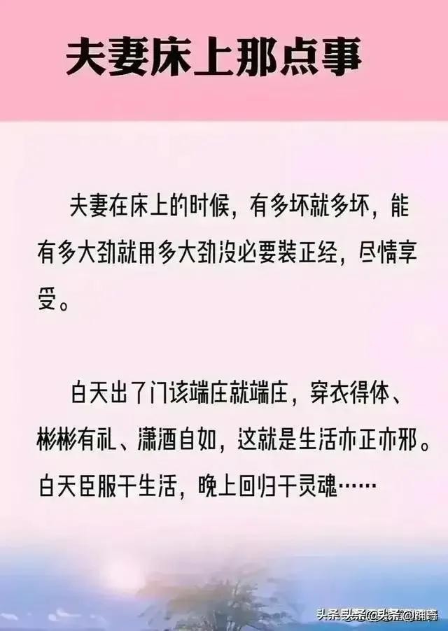 然而,这并不意味着夫妻之间的亲密关系应该被忽视。实际上,保持良好的床上生活对于夫妻关系的健康发展至关重要。