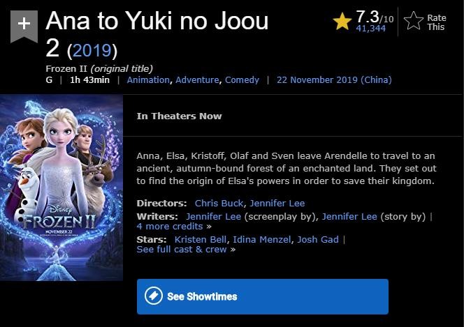 5.《冰雪奇缘2》Frozen 2