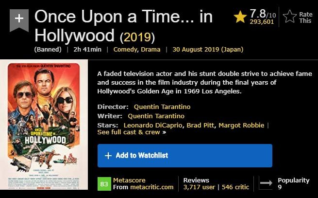 13.《好莱坞往事》Once Upon a Time in Hollywood