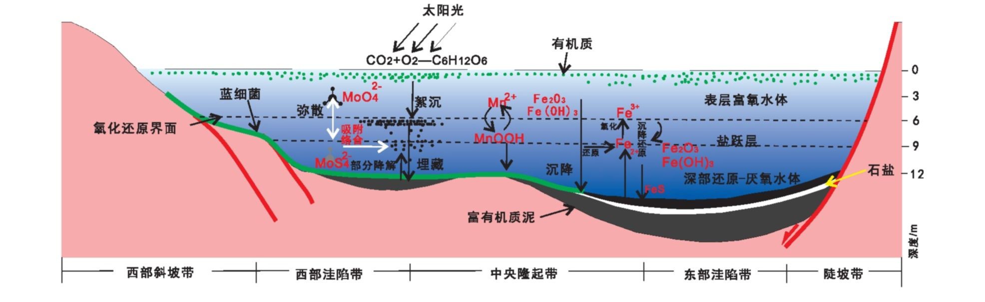 东濮凹陷整体上是一个盐化湖盆,含盐度特别高。发育了末端扇—滨浅湖滩坝组合沉积体系。其页岩的有机质富集主要受控于古生产力、古盐度和沉积速率,氧化还原条件对有机质富集的影响不大。具体而言,在泥页岩沉积时期,湖盆处于局限、寒冷和干旱的古气候,水深较大,水体盐度较高。同时,较大的水深和较高的盐度促使水体出现盐跃层,使得水体发生分层,还原性强且稳定。