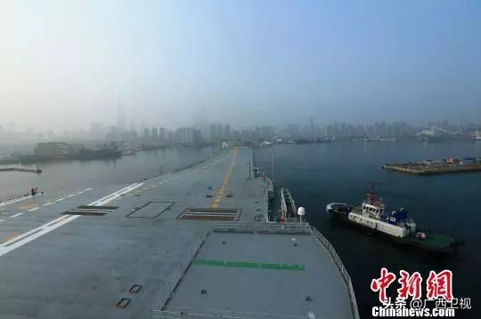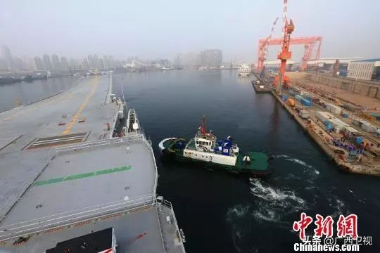 中国第二艘航母完成首次出海试验返抵大连造船厂码头