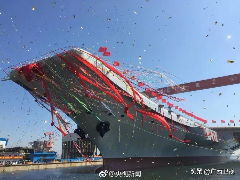 2017年4月26日上午,我国第二艘航空母舰下水仪式在中国船舶重工集团公司大连造船厂举行。第二艘航空母舰由我国自行研制,2013年11月开工,2015年3月开始坞内建造。