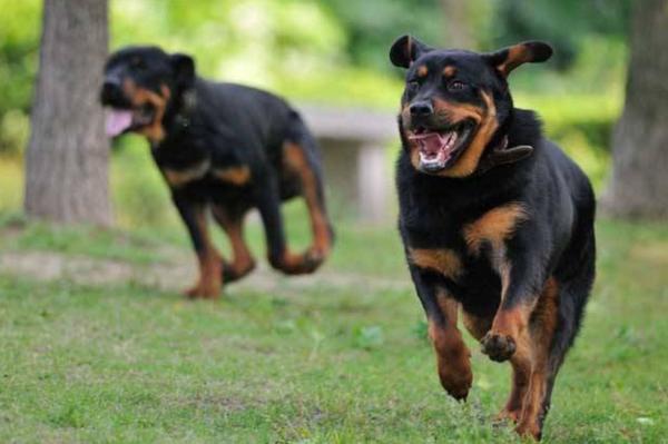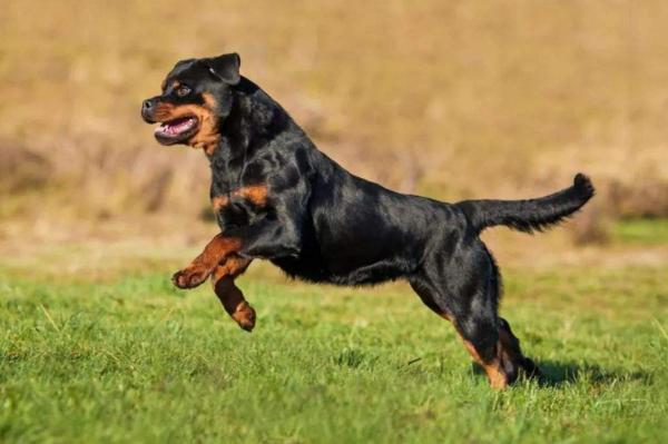 野生的罗威纳犬攻击性很强,是一种身材魁梧、性格凶猛的狗狗。如果我们不对它进行训练,它很有可能会养成目中无人的坏习惯,时常大声吠叫扰民,甚至会在街上冲撞老人和小孩。