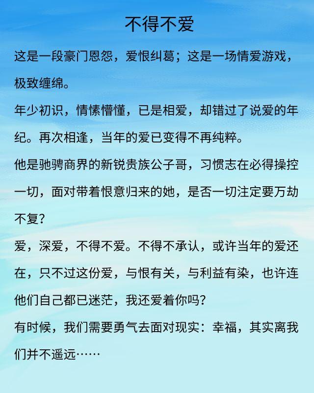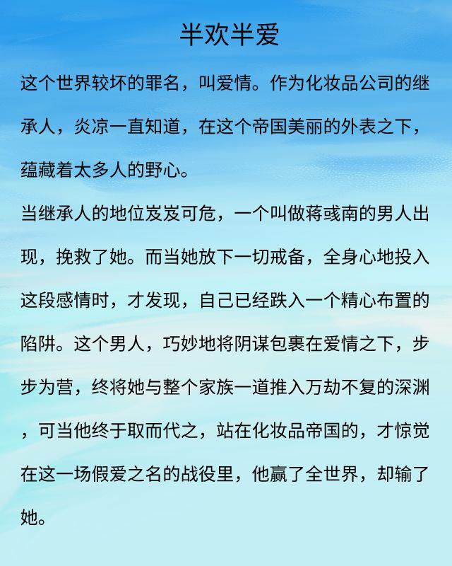 蓝白色作品推荐:《不得不爱》《半欢半爱》都是经典