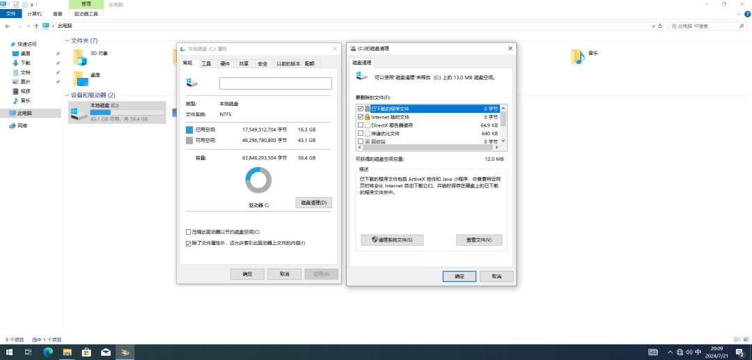 一 、使用磁盘清理工具删除该文件夹
