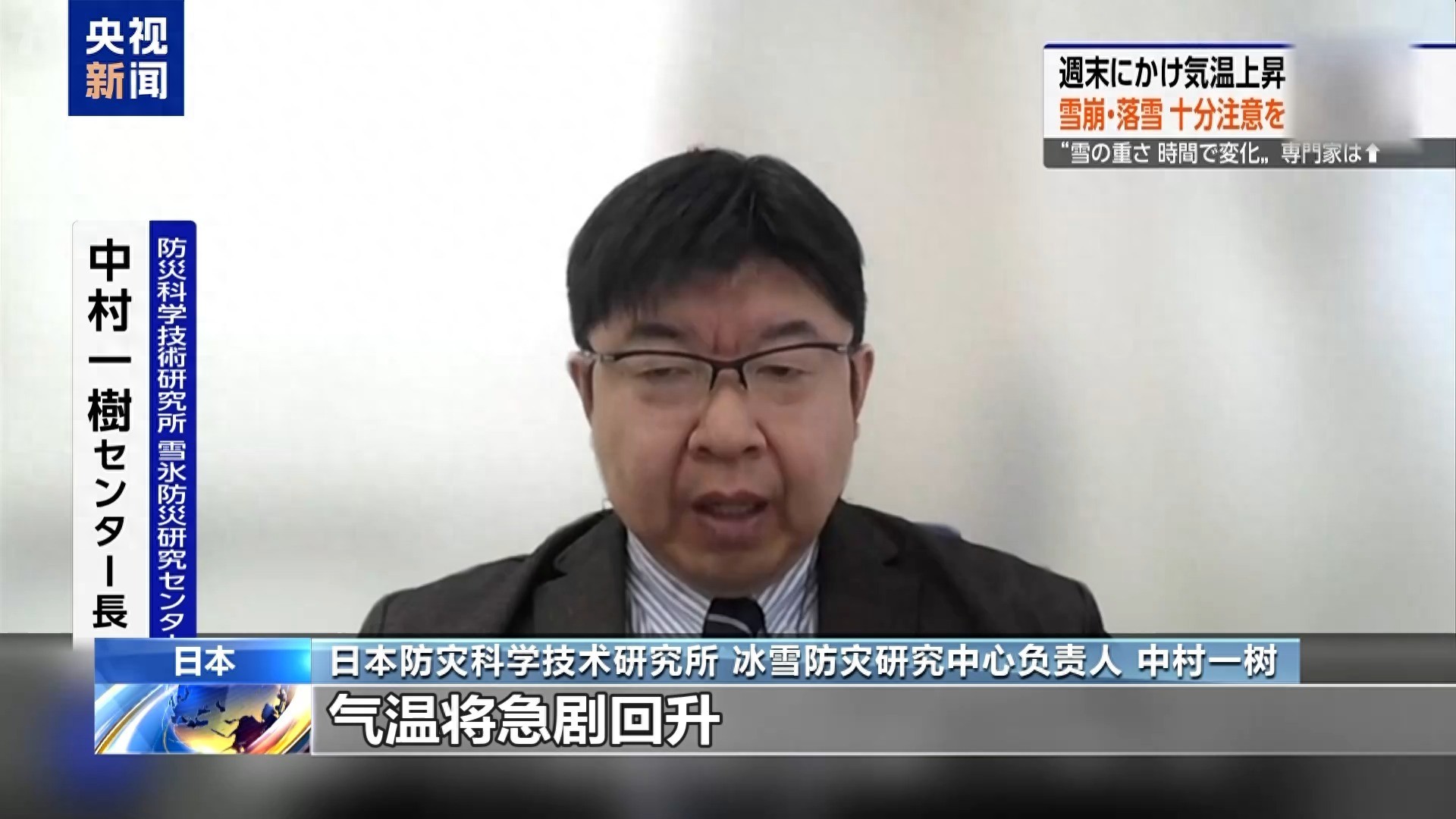 日本防灾科学技术研究所 冰雪防灾研究中心负责人 中村一树:气温将急剧回升,需要留心房檐上的积雪滑落,像树木和建筑物上,这种头顶上的融雪坠落,很容易发生危险。