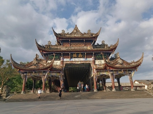 1979年由四川省政府拨款重建南桥,1982年竣工。南桥的桥头增建了桥亭、石阶、桥身雕梁画栋,桥廊增饰诗画匾联,被誉为“水上画楼”、“雄居江源第一桥”。