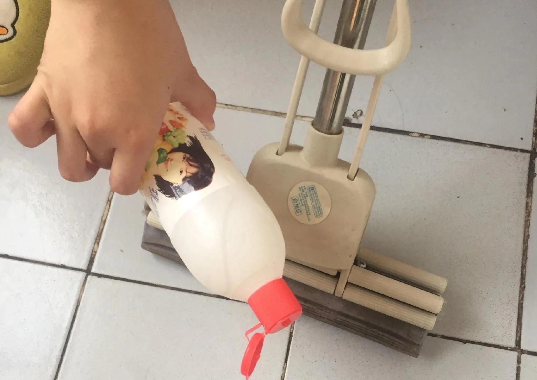 几块钱一大瓶的洗洁精用来拖地,在盆中加入温水,加几滴洗洁精,搅拌均匀,然后将拖布完全浸入水中,拧干之后,装上拖把,这样拖地,地板就洁净如新啦!而且一点水印都没有哦。