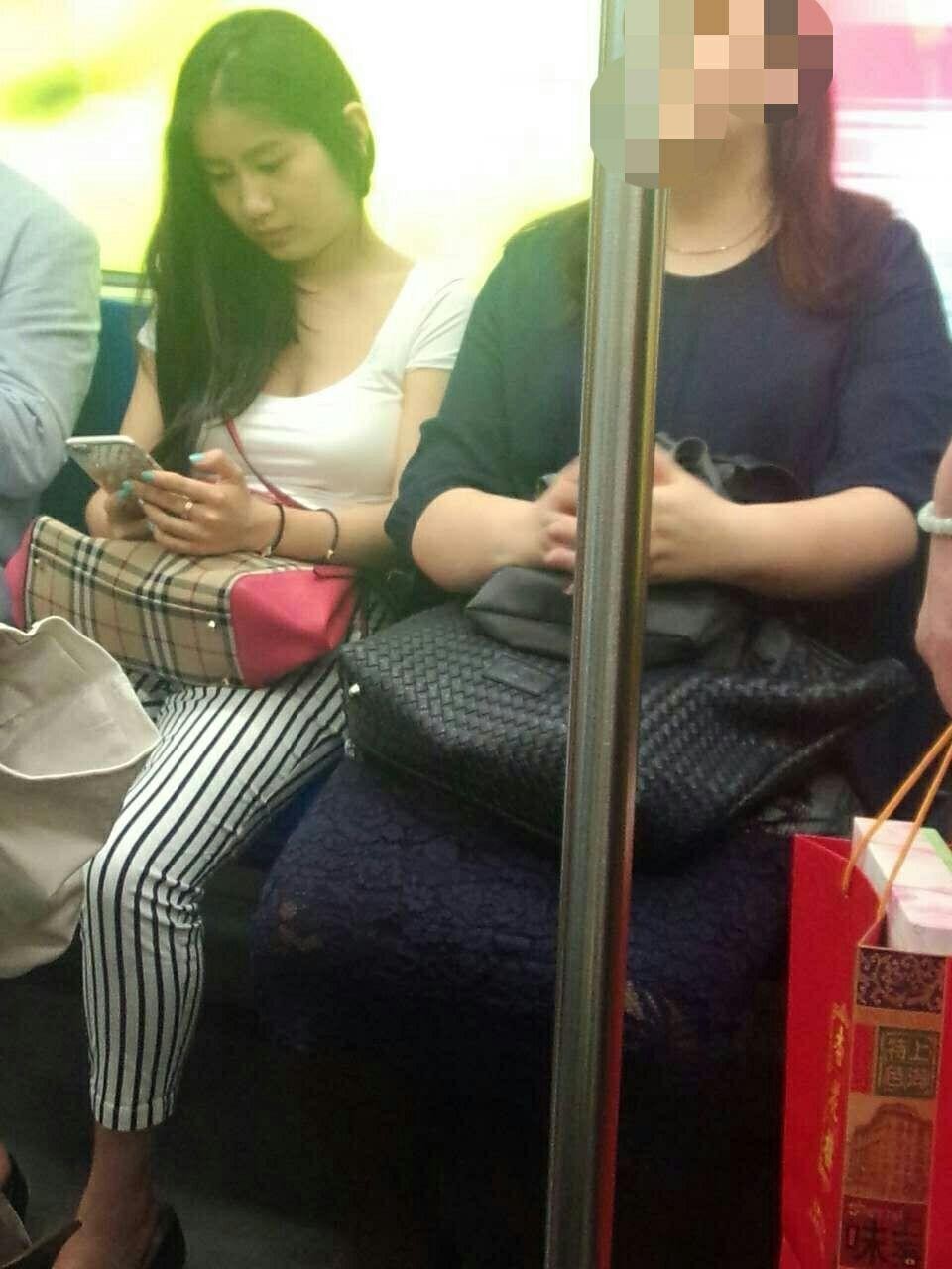 穿着低胸衣服坐地铁,让男人目不转睛。他们眼睛不知道往哪看,既不好好看,也不敢不看。