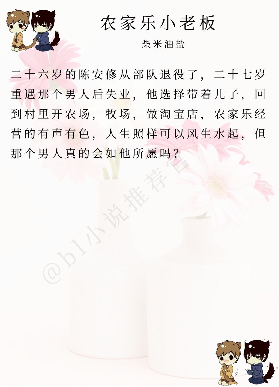 简评:主要讲述主角受带着9岁的娃,开农庄,赚钱,当小老板。偶遇一波攻,然后把攻取回家的种田故事。