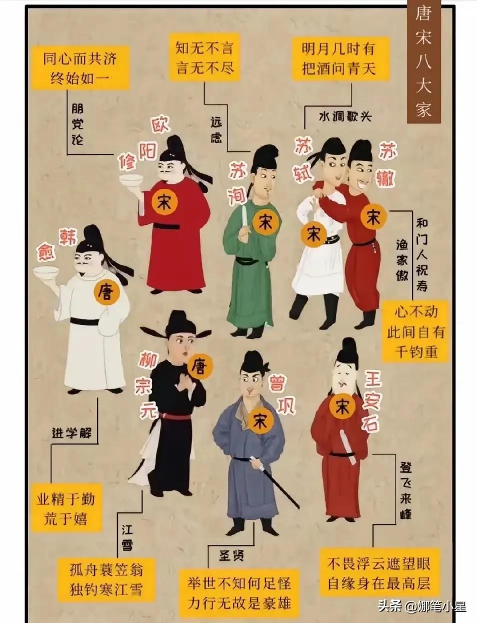 一韩一柳一欧阳,三苏一曾与一王。
