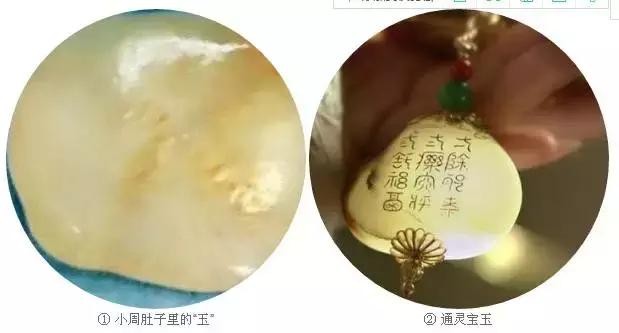 当她的腹腔被打开时,一个晶莹剔透的“水球”滑了出来:长宽约四五厘米,厚约0.5厘米,质地非常柔软,外壁及其内包含的液体透明澄澈,美丽而神秘,很像一块“美玉”。