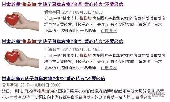 近日,有网友向“西藏网警”反映在微信群传发一则“甘肃老师‘格桑加’为贫困孩子筹旧衣物”的信息。