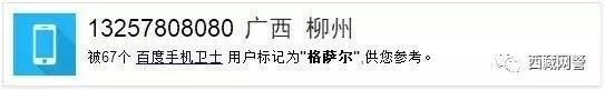 2、经“百度手机卫士”查询发现,该号码属地为广西柳州,与文中提到的甘肃甘南地区也不相符。