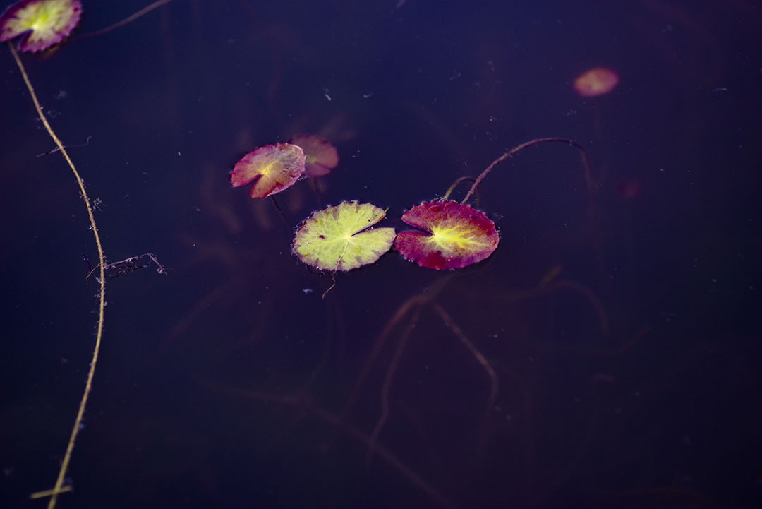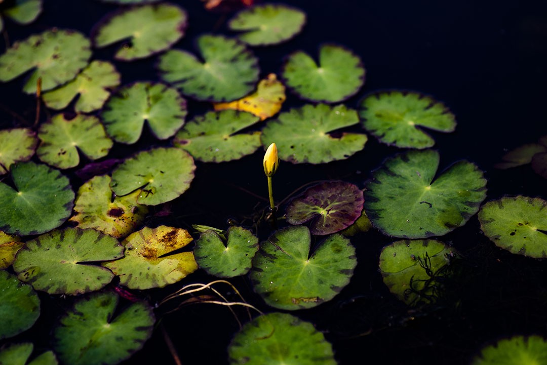 荇菜的叶子,有点像缩小版的睡莲,所以初见不认识的时候,还以为是野生莲花。荇菜开花为蛋黄色,有点像丝瓜的花。