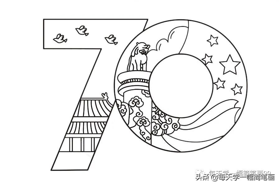 每天学一幅简笔画--中华人民共和国70周年简笔画