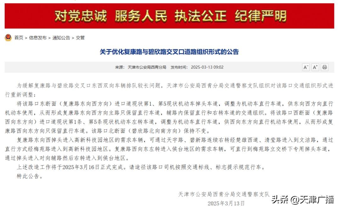 【这个交叉口交通调整】复康路与碧欣路交叉口道路组织形式调整,改造将于3月16日正式完成。