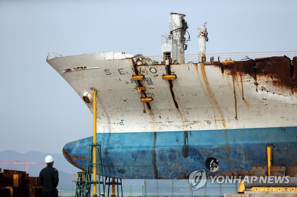 2014年4月16日,“世越号”客轮在韩国全罗南道珍岛郡海域沉没,304人遇难,檀园高中参加济州岛修学旅行的325名2年级学生中250人遇难。目前檀园高中仍有2名学生和1名教师的遗体未被找到。(图片来源:韩联社)