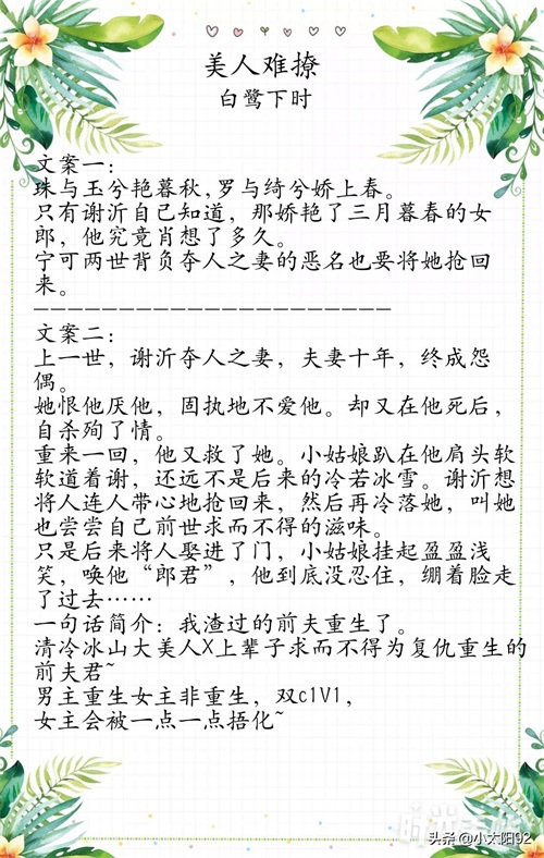 喜欢看古言重生甜宠文的小可爱们,可以看看这几本,都是完结文哦,不喜重生文的小伙伴还请手下留情,不喜勿喷哦!自由选择